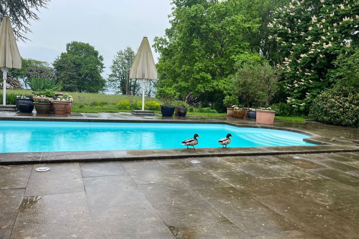 Neulich beim Pool-Service bei einer Kundin in der Region Gommiswald: Unsere Techniker trauten ihren Augen kaum — zwei Enten hatten sich heimlich Zugang verschafft und genossen sichtlich das kristallklare Wasser des privaten Pools. Ganz so, als wäre es ihr persönliches Spa!